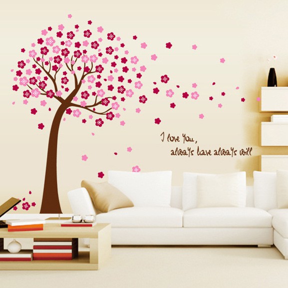 Indah DIY dekorasi rumah stiker dinding, Pohon bunga sakura bunga stiker dinding dekoratif seni lukisan untuk dinding HH1241|sticker tree|wall sticker treewall sticker - AliExpress