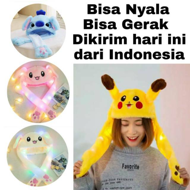 Topi Tiktok / Bunny Hat Led Pokemon & Kelinci Import Bisa Gerak & Nyala | Shopee Indonesia