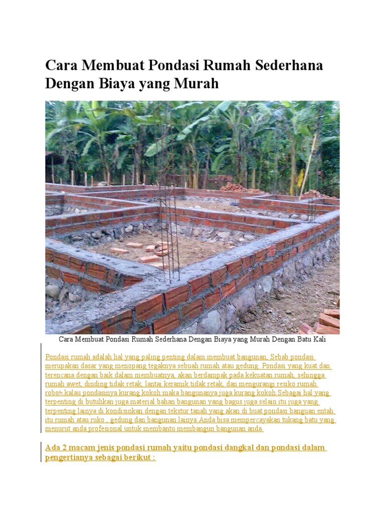 Cara Membuat Pondasi Rumah Sederhana Dengan Biaya Murah