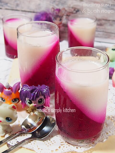 Puding Lapis Susu & Buah Naga - Monic’s Simply Kitchen