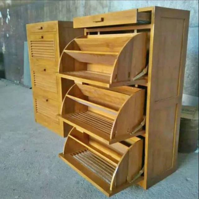 RAK SEPATU SANDAL KAYU JATI - LEMARI SEPATU - ALMARI SEPATU RETRO di Lapak CV ALIM ROEGI Jati Furniture | Bukalapak