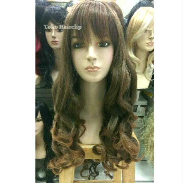 R936 Wig long curly panjang keriting gantung poni samping hitam coklat di Lapak Ryuuta Wig | Bukalapak