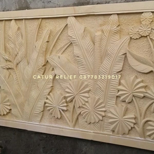Relief motif tumbuhan pemandangan, relief batu alam motif pemandangan