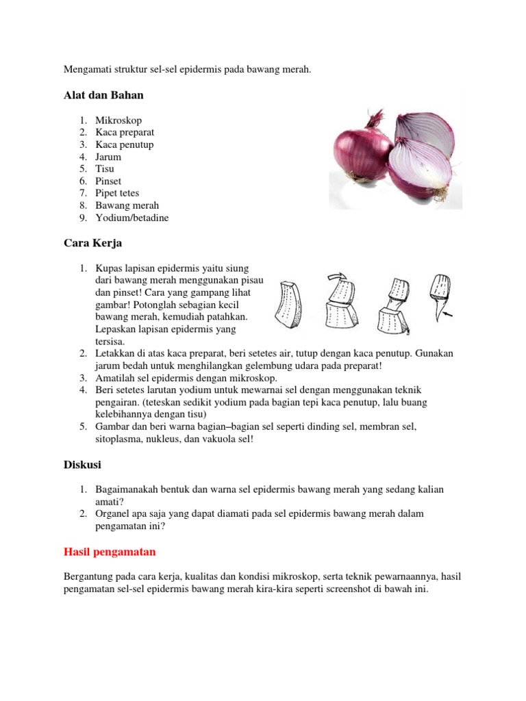 DOC) LAPORAN HASIL PENGAMATAN SEL-SEL EPIDERMIS BAWANG MERAH Tujuan Mengamati struktur sel-sel epidermis pada bawang merah | Muhamad Blg - Academia.edu