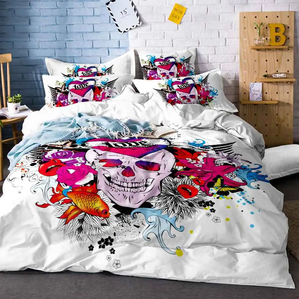 Punk Skeleton Bunga Selimut Sarung Bantal Set Tempat Tidur Queen Ukuran Super Lembut Seprai Bunga Gambar Mewah Set Tempat Tidur E|Set tempat tidur| - AliExpress