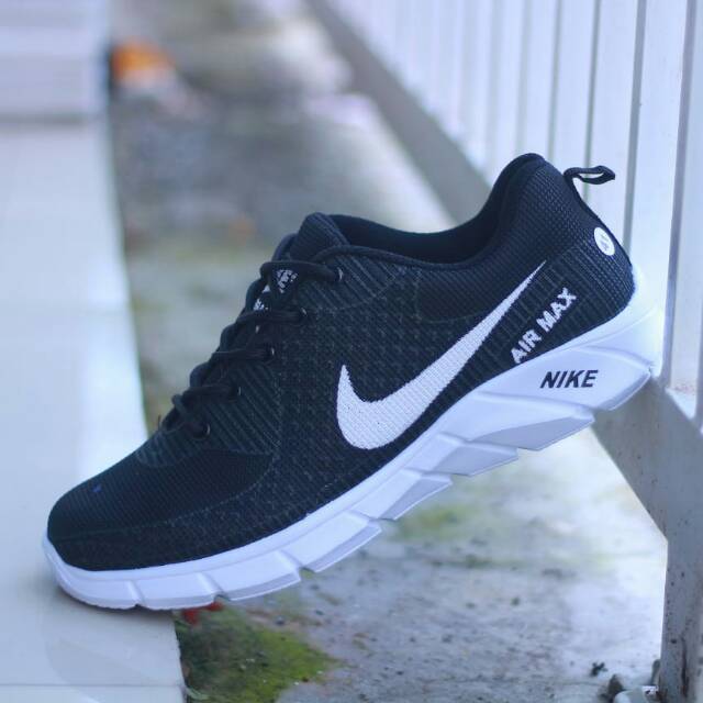 Sepatu Sport Nike Airmax Running Men / Hitam Putih, Fesyen Pria, Sepatu di Carousell