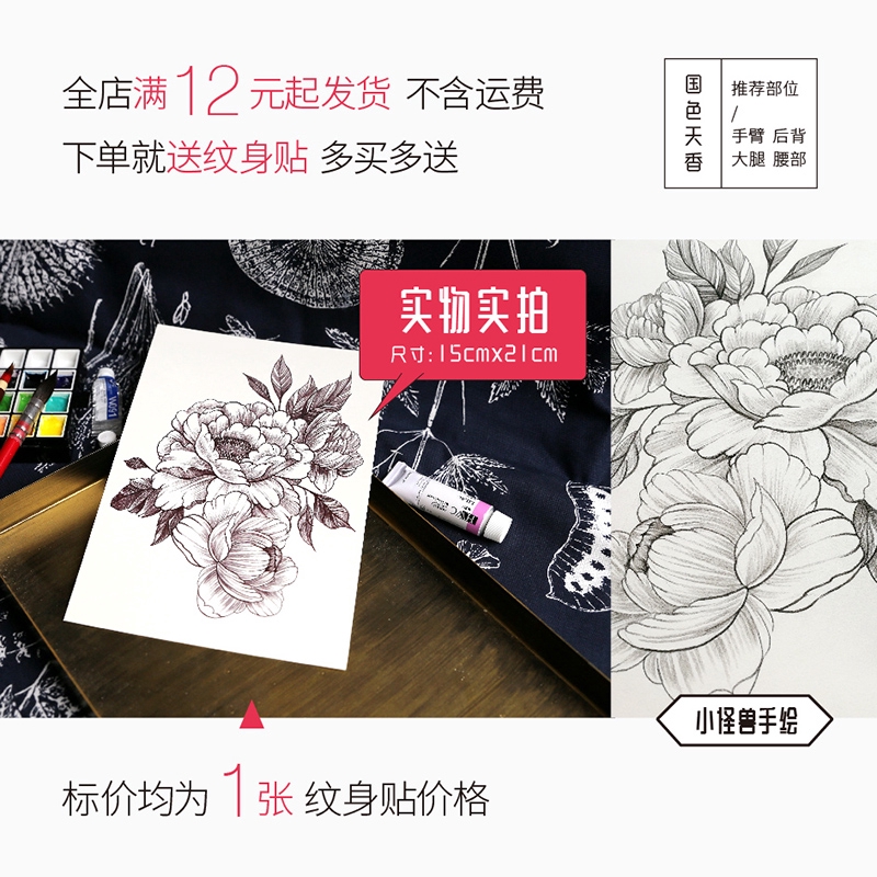Unicorn rakasa kecil tanaman sketsa bunga lengan tato stiker peony bunga pria dan wanita tahan air s | Shopee Indonesia