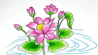 Menggambar & Mewarnai Bunga Teratai Lotus Mudah untuk Anak - YouTube
