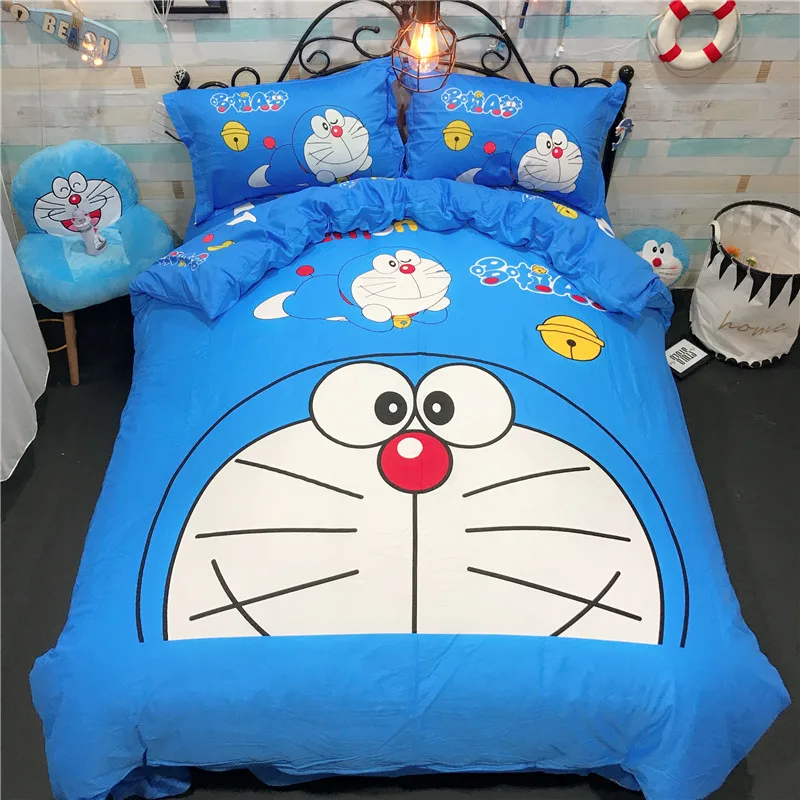 Mode Kartun kucing 3d Tempat Tidur Rumah Set Doraemon Dicetak Anak anak Tidur Kapas Sprei 4 pcs Selimut Cover Sprei sarung bantal|Set tempat tidur| - AliExpress