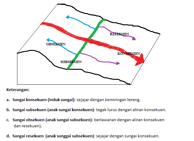 Apakah gambar sungai resekuen, obsekuen, subsekuen dan konsekuen ini sudah benar ? Jika belum, - Brainly.co.id