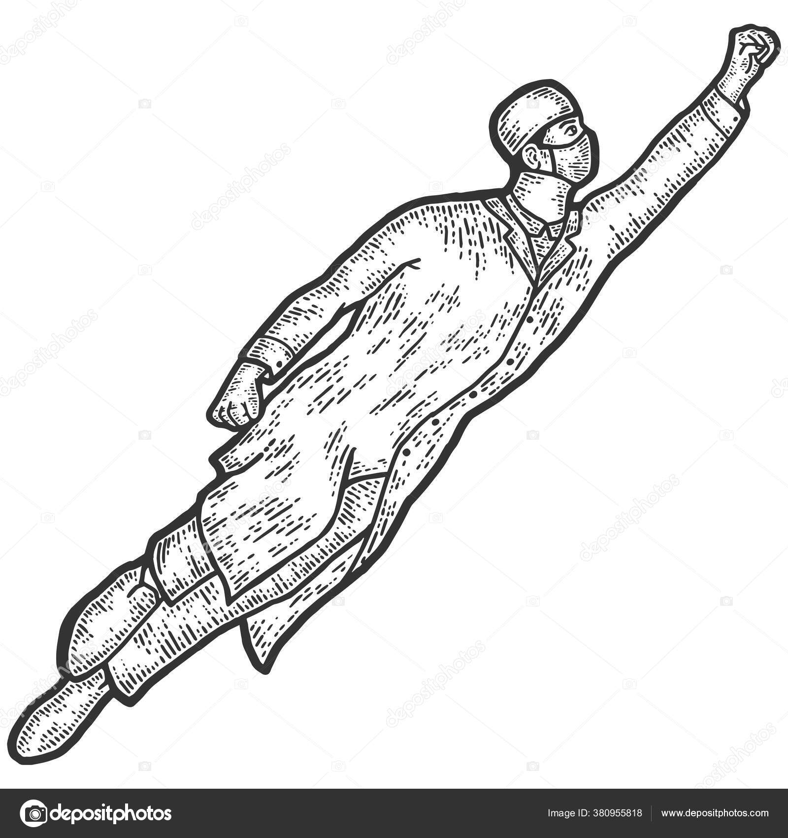 Dokter Superhero. Sketch menggaruk papan imitasi. Hitam dan putih. — Stok Foto © toricheks2016.gmail.com #380955818