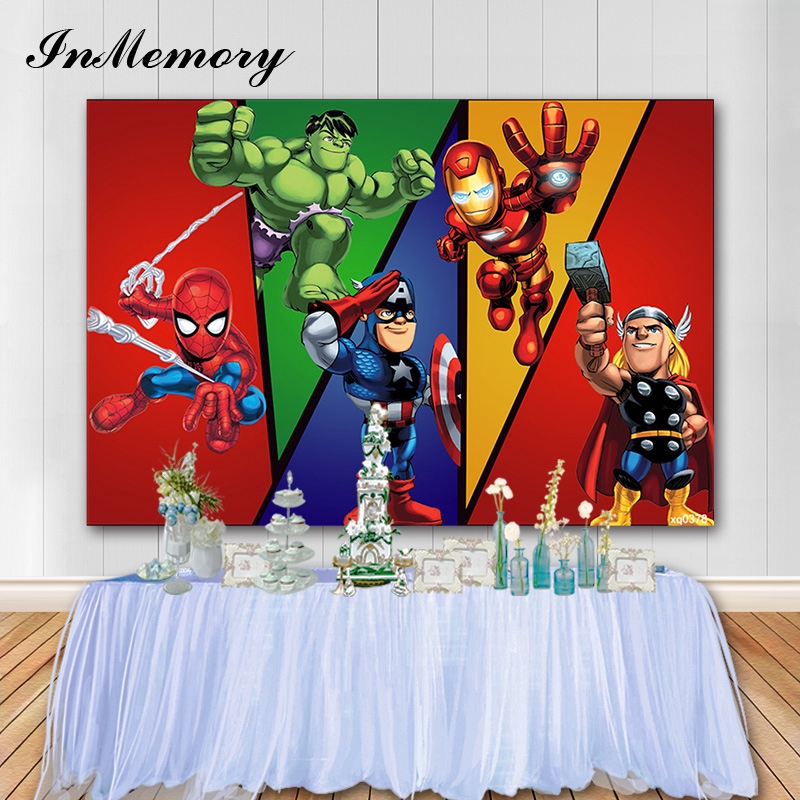 Banner Latar Belakang Foto Desain Superhero Avengers Spiderman Iron Man Thor Untuk Pesta Ulang Tahun | Shopee Indonesia