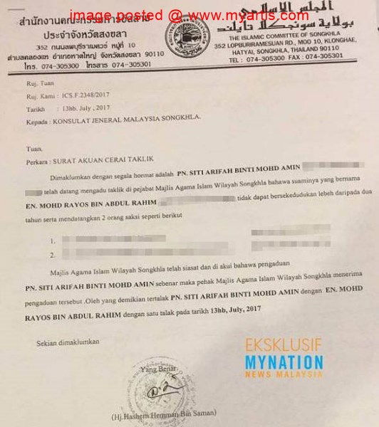GAMBAR] Sijil Perceraian Ini Tertulis Rihana Oksana Dicerai Talak Tiga. Sahih ke? | Murai MY