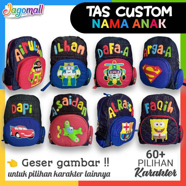 Tas karakter anak / TAS SEKOLAH ANAK / Tas nama anak / TAS ANAK TK / TAS ANAK SD / tas anak karakter | Shopee Indonesia