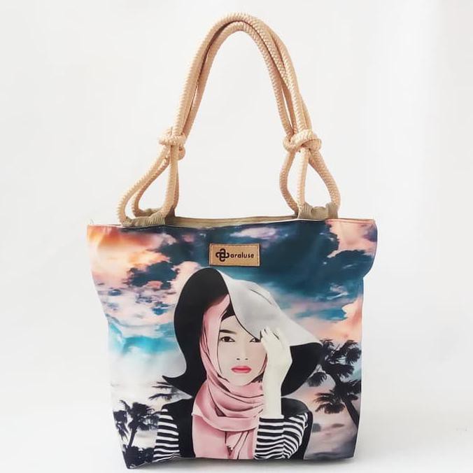 Tas Totebag Terbaru Tali Kulit Sintetis Unik Gambar Motif Printing Kartun Muslim Muslimah di Lapak Bag Collection | Bukalapak