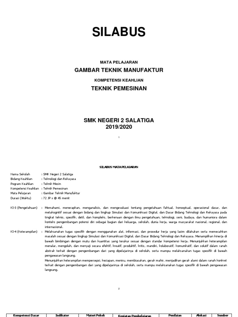 Silabus gambar teknik kelas x kurikulum 2013