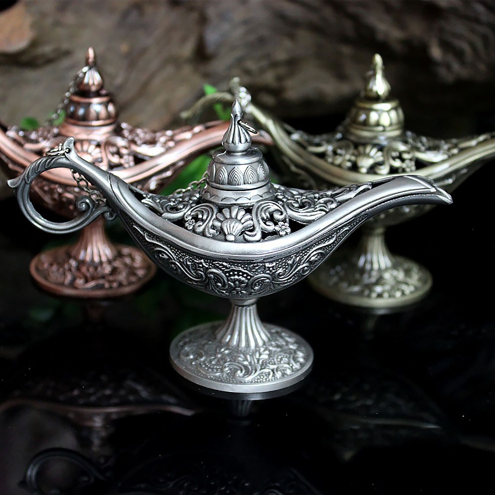 Logam Ukiran Aladdin Lampu Lampu Berharap Jin Sihir Teko Vintage Teh Pot Minyak|Patung-patung & Miniatur| - AliExpress