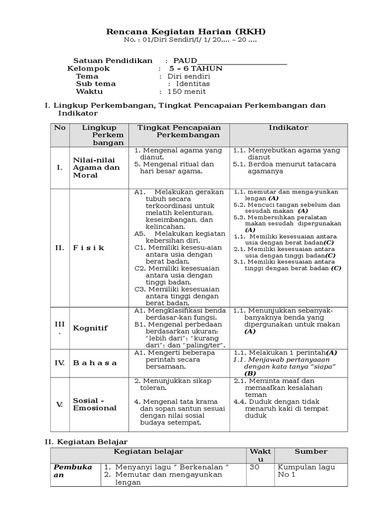 Contoh Rpph Paud Tema Diri Sendiri – Berbagai Contoh