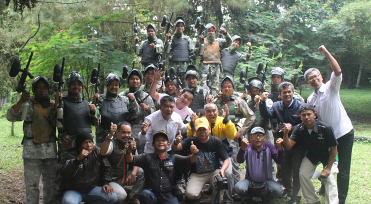Seru dan Tegang, Para Wartawan Memakai pakaian Ala Militer Bermain Paint Ball di Areal Wisata PT.Sariater Subang | JURNAL MEDIA INDONESIA