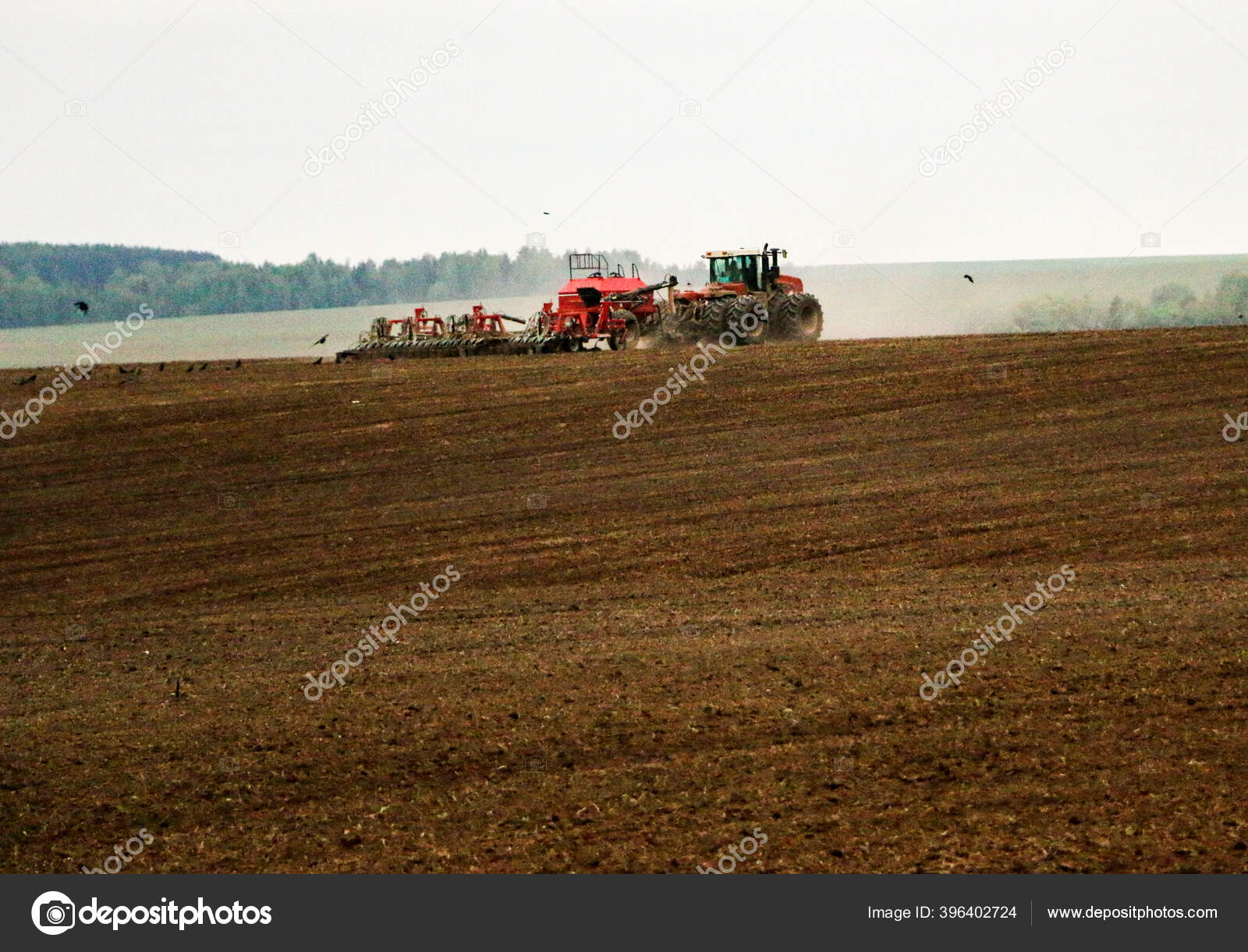 Traktor Besar Dengan Bajak Membajak Sawah Sebelum Penanaman Musim Semi Stok Foto © ognennaja #396402724