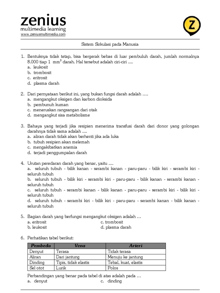 Soal dan pembahasan Sistem Peredaran Darah manusia (Biologi) | Usaha321.net