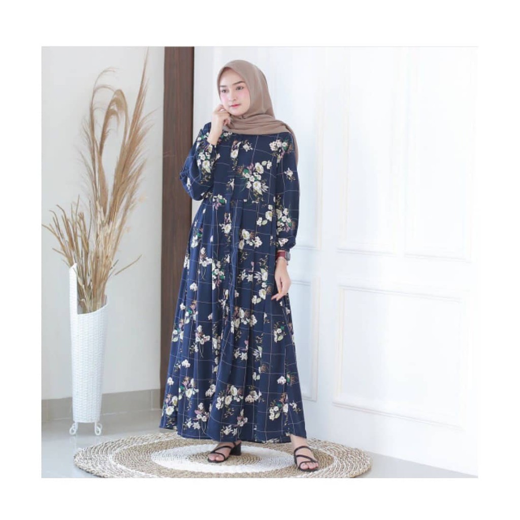Dress Wanita Muslimah Gamis Niva maxi PUTIH / NAVY / terbaru / promo / termurah / motif bunga | Shopee Indonesia