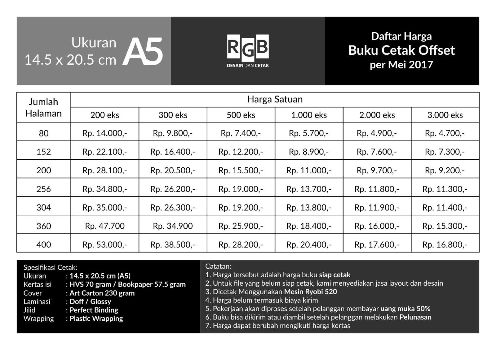 Daftar Harga Cetak Buku Satuan 2017 | cetak.in | Percetakan RGB | cetak buku offset, buku satuan, buku tahunan, brosur, kalender dll.