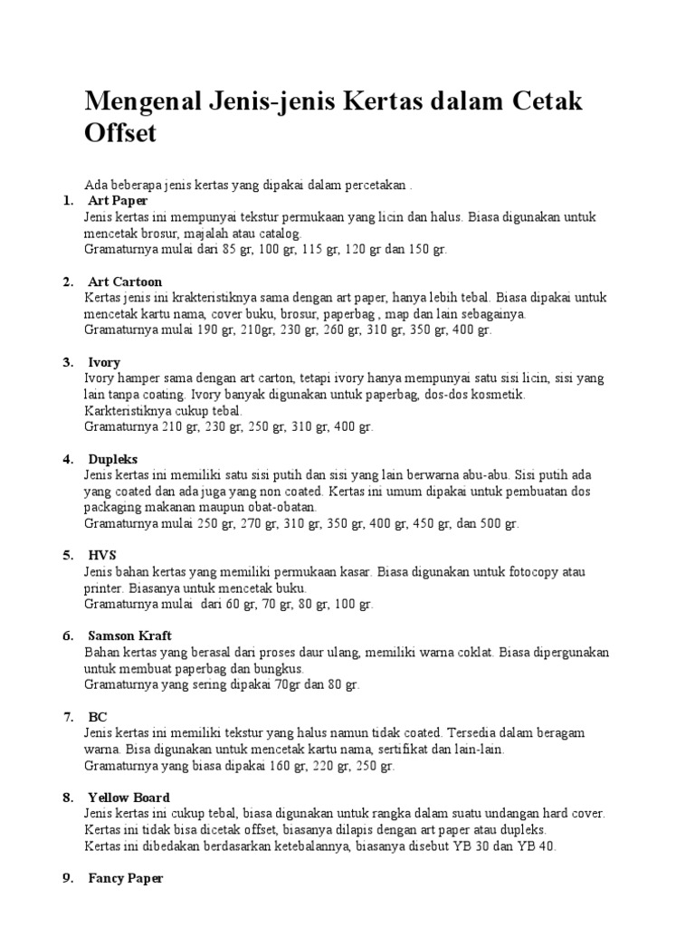 Jenis Kertas Dalam Percetakan – MAP RAPORT JOGJA-IJAZAH-AGENDA – LAMTORO