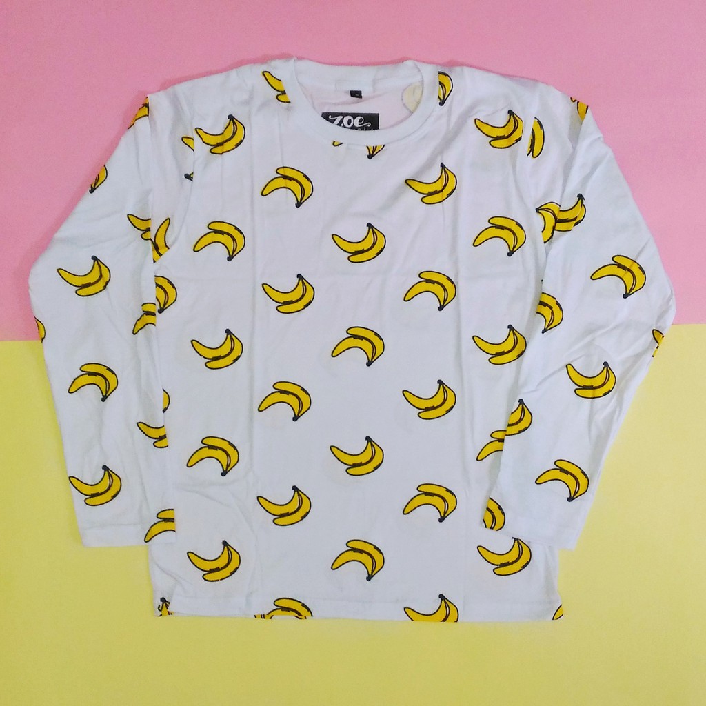 Banana Longsleeve White Vol 1 / Banana Tshirt / baju pisang / kaos Pisang / kaos fullprint | Shopee Indonesia