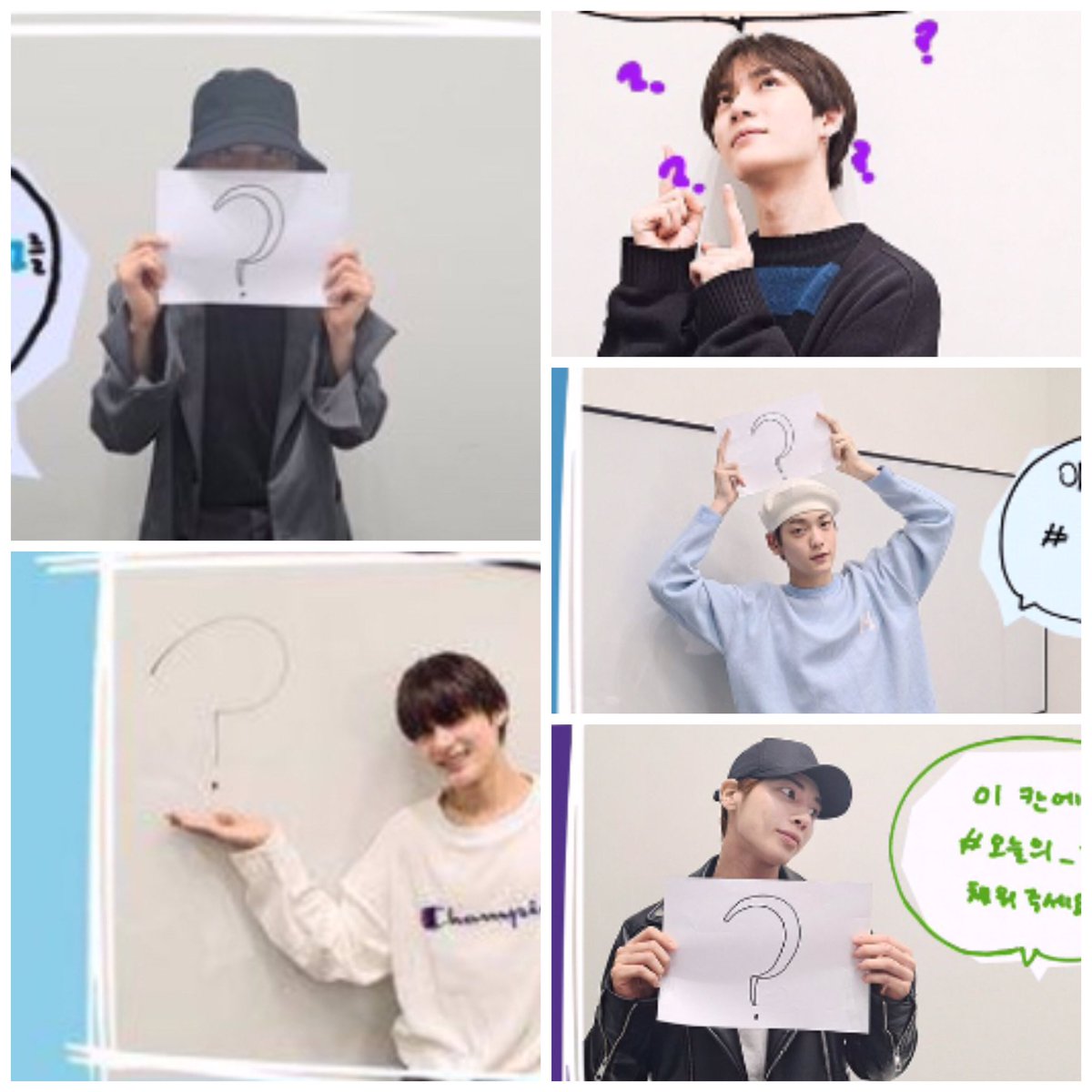 MOA INA on Twitter: “Kecuali Beomgyu, setiap member yang lain bisa kita lihat memegang dan menunjuk gambar tanda tanya yang besar. Dan bentuk tanda tanya ini agak aneh, karna kepalanya besar. Tanda