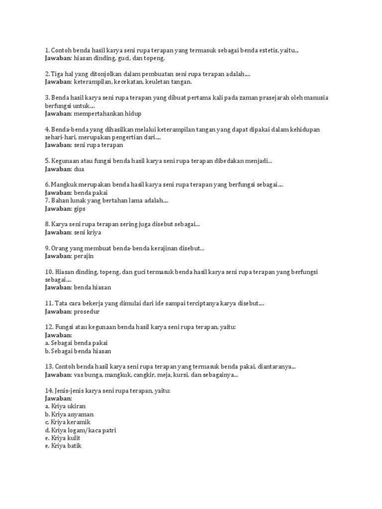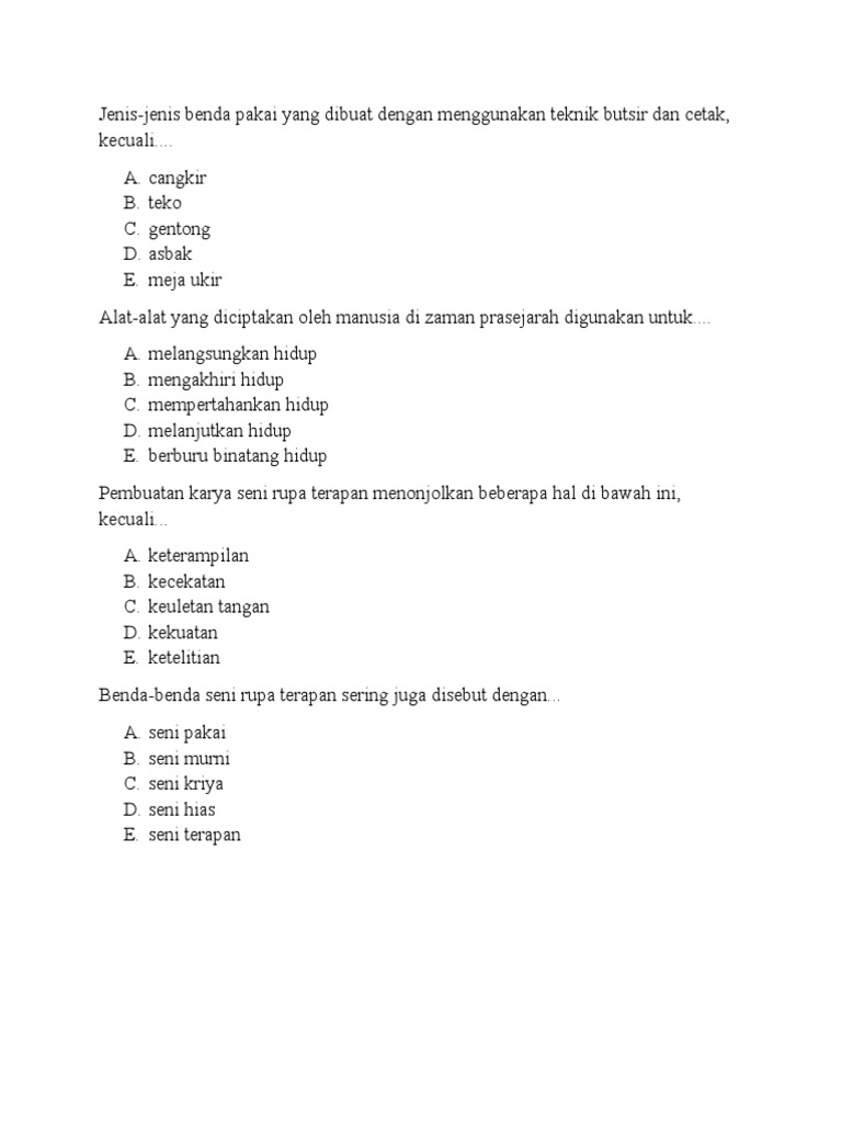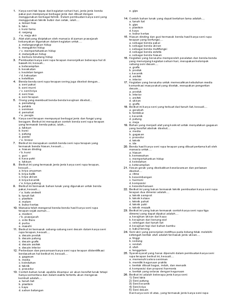 DOC) Soal Ujian Kelas VII SENI BUDAYA | lisa mariya - Academia.edu