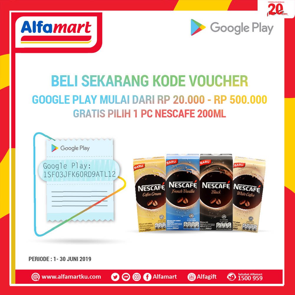 Alfamart auf Twitter: “Beli sekarang kode voucher GOOGLE PLAY mulai dari Rp 20.000 - Rp 500.000 gratis pilih 1 pc Nescafe 200ml untuk Sahabat. Periode promo 1-30 Juni 2019. #Alfamart… https://t.co/uMmXkIfe0H”