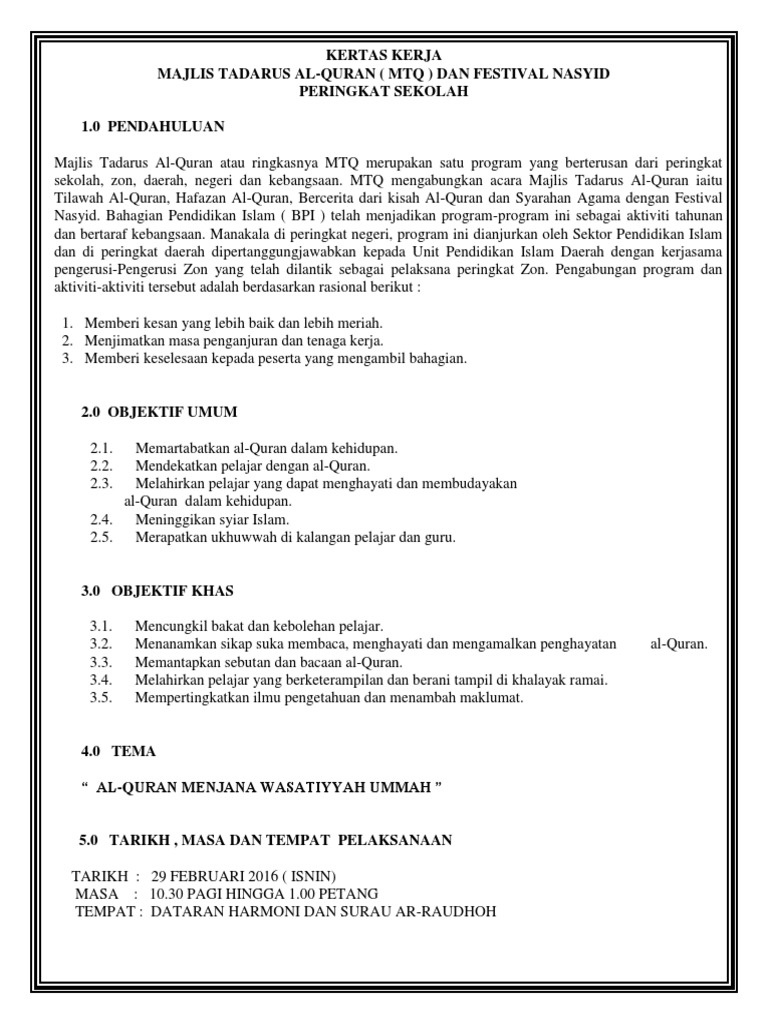 Kertas Kerja MTQ 2013 - [DOC Document]