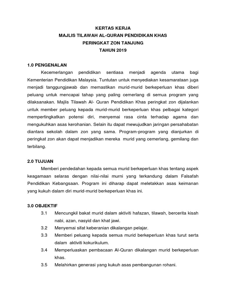 kertas kerja MTQ pendidikan khas 2019