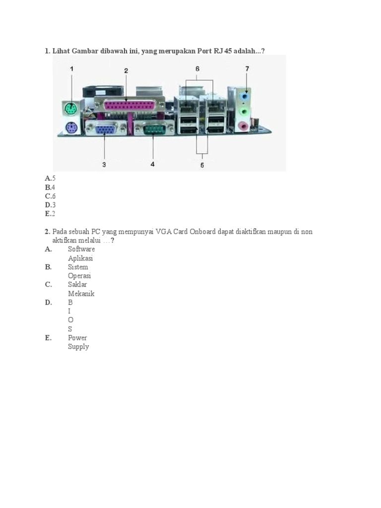 1. Lihat Gambar dibawah ini, yang merupakan Port RJ 45 adalah…?