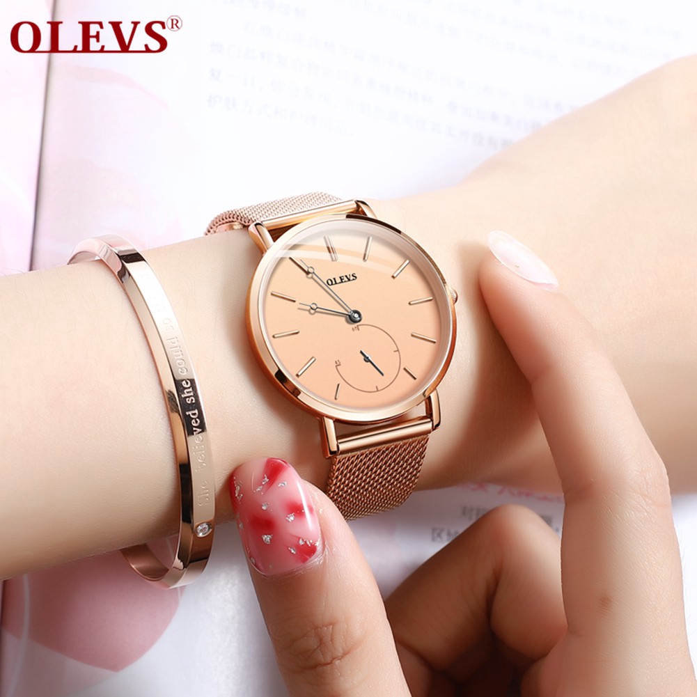 OLEVS Jam Tangan Wanita Original Analog Ultra Tipis Tahan Air Emas Naik Rose Gold Lihat | Shopee Indonesia