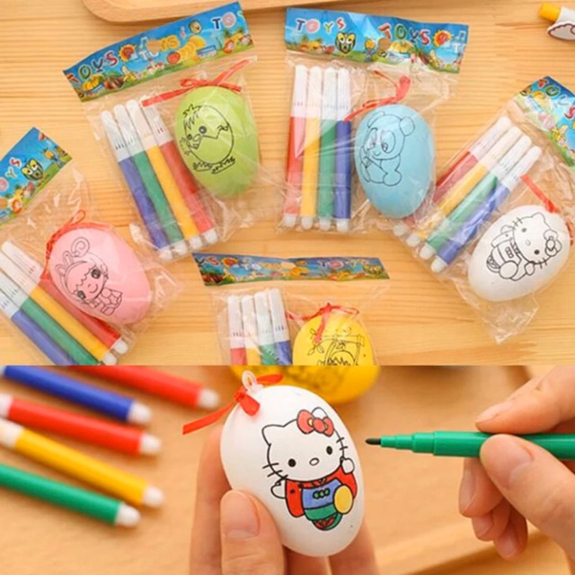 set telur dan 4 spidol mini mewarnai mainan anak egg colouring | Shopee Indonesia