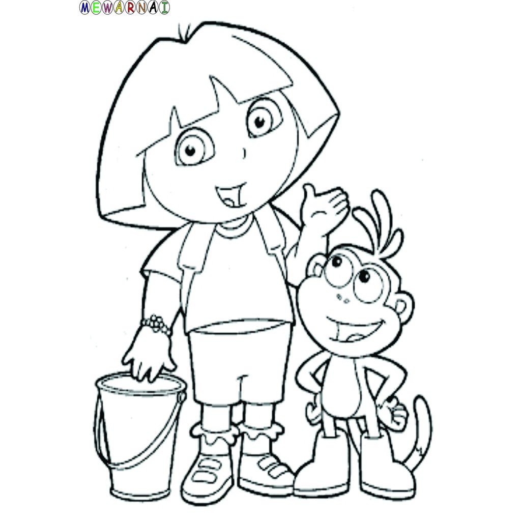 Belajar mewarnai gambar dora dan boots untuk anak