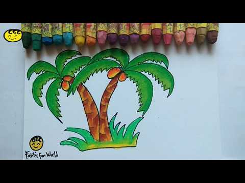 Menggambar pohon kelapa || Cara menggambar dan mewarnai pohon kelapa - YouTube