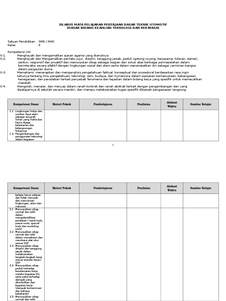 14 Silabus Pekerjaan Dasar Teknik Otomotif-X