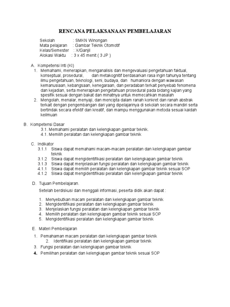 RPP Gambar Teknik Otomotif (GTO) Kurikulum 2013 Revisi - Elearning Web Guru