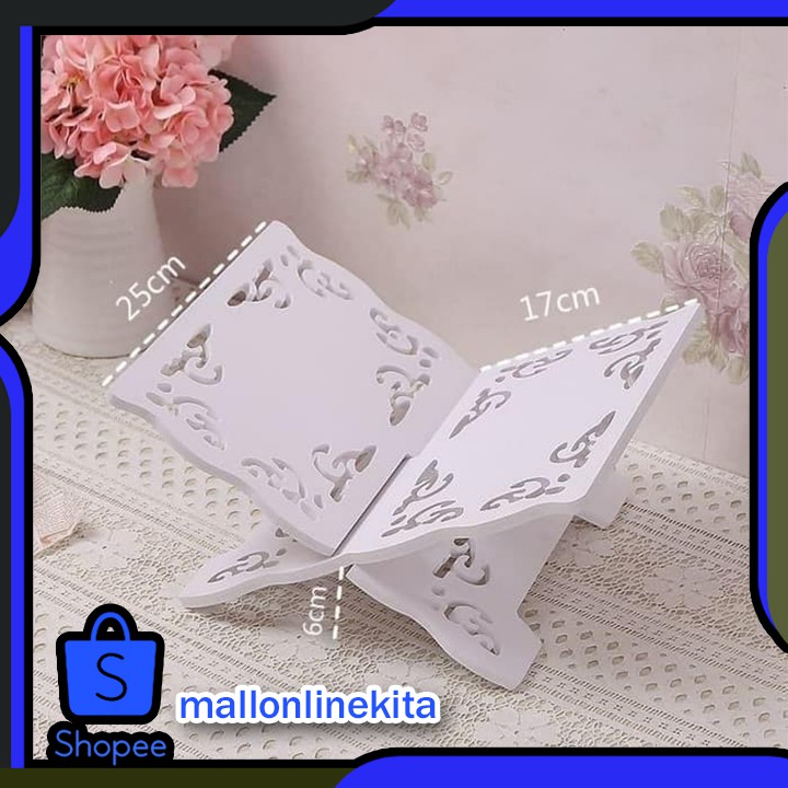 Stand Meja Dudukan Rekal Rak Al Quran Tempat Baca Buku Motif Batik Putih Cantik Sandaran Quran | Shopee Indonesia