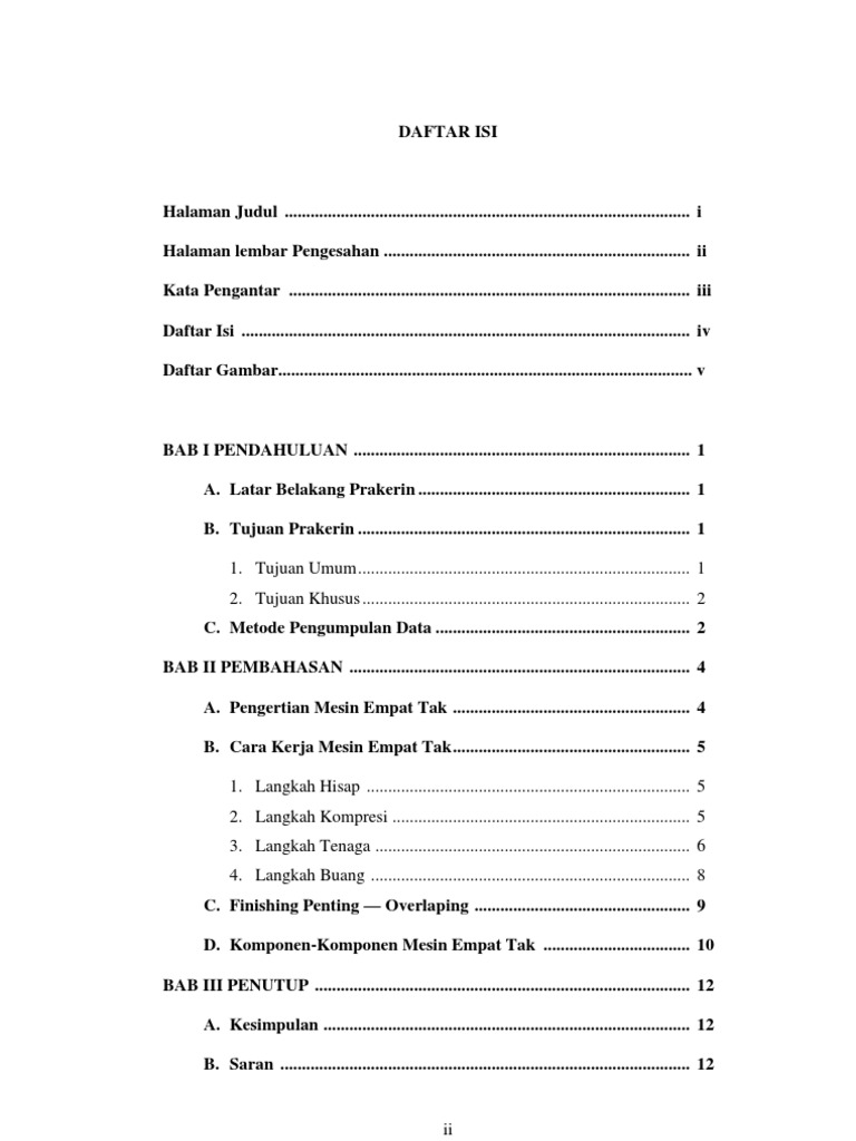 DOC) CONTOH DAFTAR ISI LAPORAN PKP | Julia Arsia Nafhasya - Academia.edu