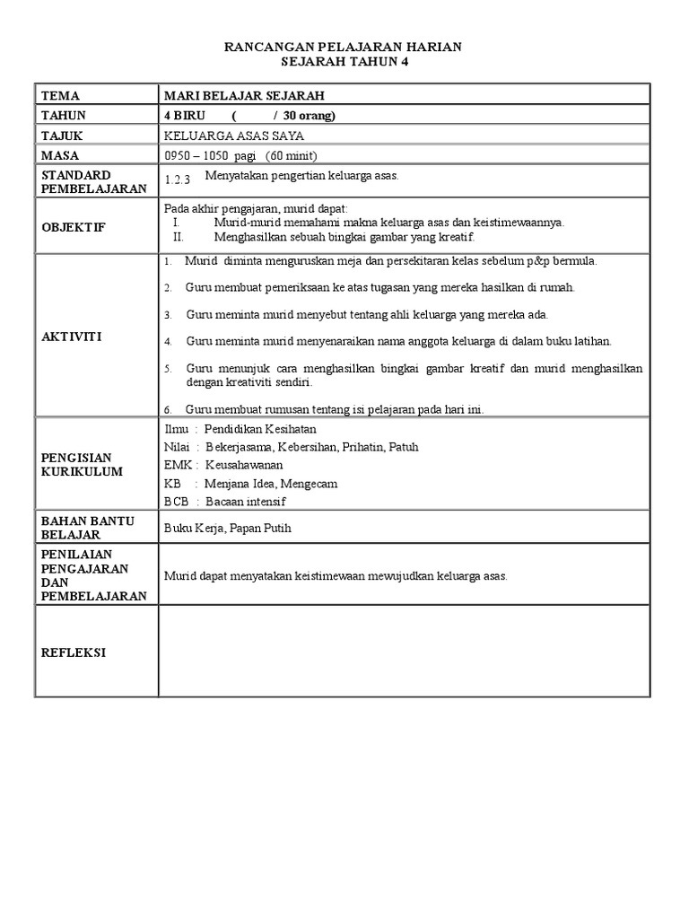 Rph Sejarah Tahun 4