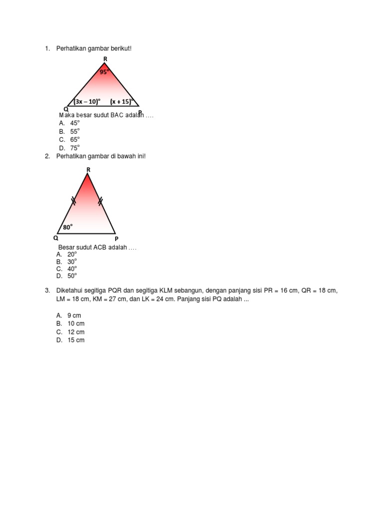 Besar sudut nomor 1 adalah 95° dan besar sudut nomor 2 adalah 110° besar sudut nomor 3 adalah