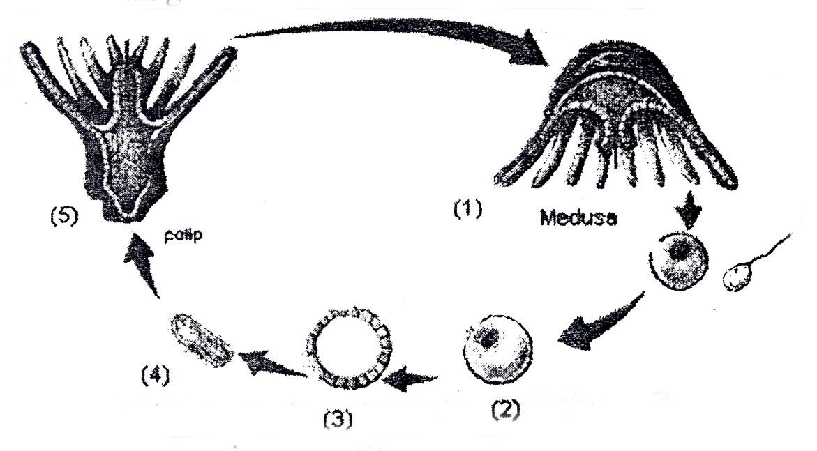 Perhatikan gambar daur hidup coelenterata di bawah ini! Tahapan reproduksi generatif pada kelompok hewan coelenterata adalah…. - Blog Pak Pandani
