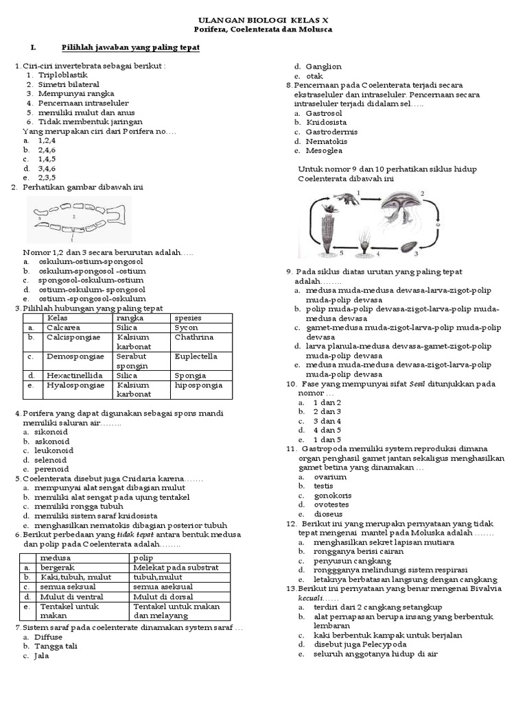 Soal Porifera Coelentarata Molusca 1