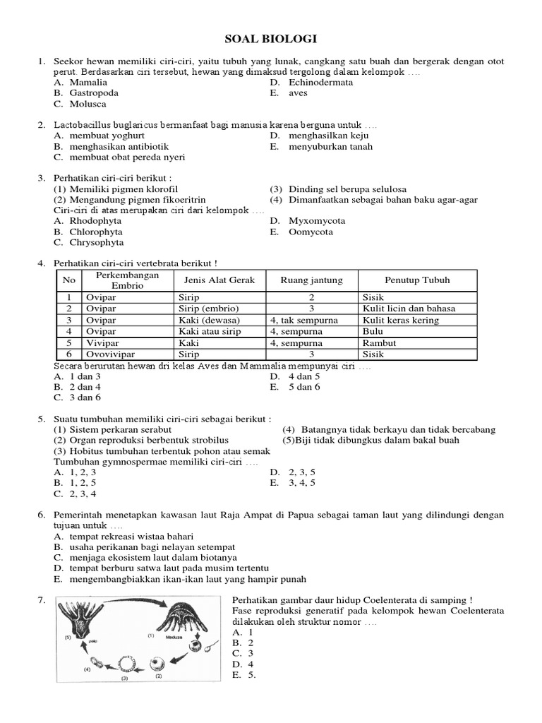 LATIHAN SOAL Perhatikan gambar Coelenterata di bawah ini - PDF Download Gratis