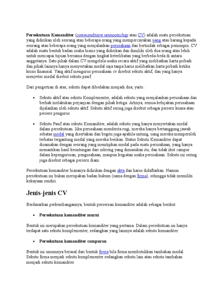 DOC) " Hukum Dagang Persekutuan Komanditer (CV) " | Rutnia Wilujeng - Academia.edu