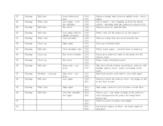 Shot list template for media studies